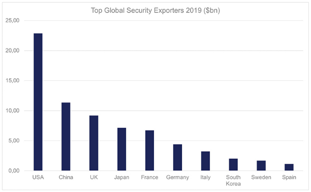Global security exports by country 2019 ($ billion). With the exception of China in second, it is interesting to note all G7 countries bar Canada occupy the top positions. Source: UK Defence and Security statistics 2019.Out of Sight, Out of Mind Let us focus on the undemocratization process in Hong Kong. The PRC’s implementation of new national security legislation has swallowed the city into Beijing’s central rule and triggered prolific protests in the name of democratic freedoms. The British government responded by granting special visa status to three million Hong Kong residents, allowing them to settle in the UK. Conveniently ignored, was that treatment of protesters at the hands of the Hong Kong police force was guided by UK security exports and training. Tear gas and crowd suppression equipment originating from licensed British dealers have been used throughout the state’s attempts to quash the protests, with thousands of arrests made and multiple violent attacks on peaceful protesters. Rubber bullets, anti-riot shields and body armour were among items exported to Hong Kong, giving state forces supreme advantage. China has been successful in eradicating civil resistance thanks to British training institutions and equipment.